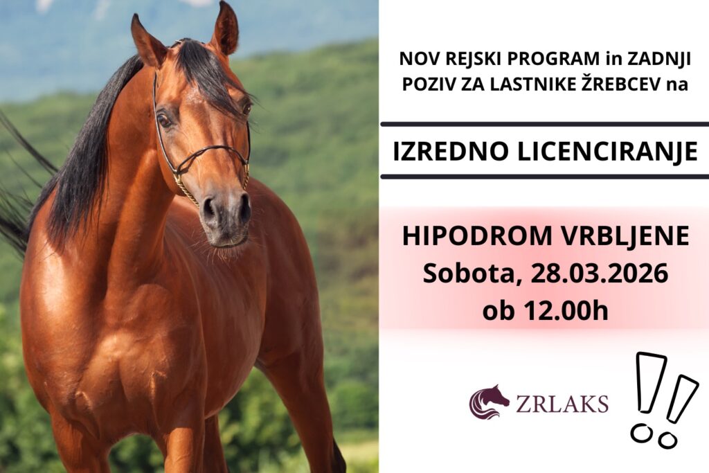 IZREDNO LICENCIRANJE IN POMEMBNO OBVESTILO ZA LASTNIKE ŽREBCEV![]()